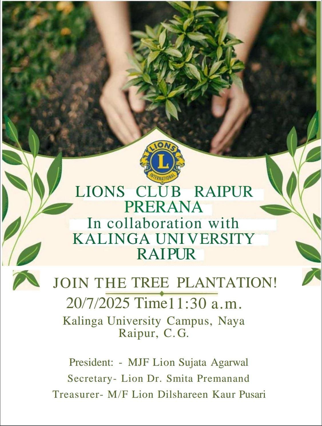 कलिंगा विश्वविद्यालय एवं लायंस क्लब रायपुर प्रेरणा द्वारा वृक्षारोपण कार्यक्रम का सफल आयोजन..
