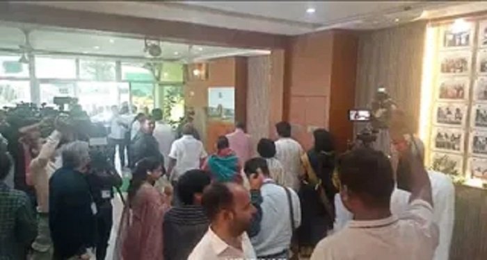 विधानसभा की कार्यवाही का बहिष्कार करने के बाद कांग्रेस विधायकों के साथ नेता-प्रतिपक्ष डॉ. चरण दास महंत ने अपने कक्ष में आपात बैठक शुरू की. इसमें पूर्व मुख्यमंत्री भूपेश बघेल सहित कांग्रेस के तमाम विधायक मौजूद हैं.
